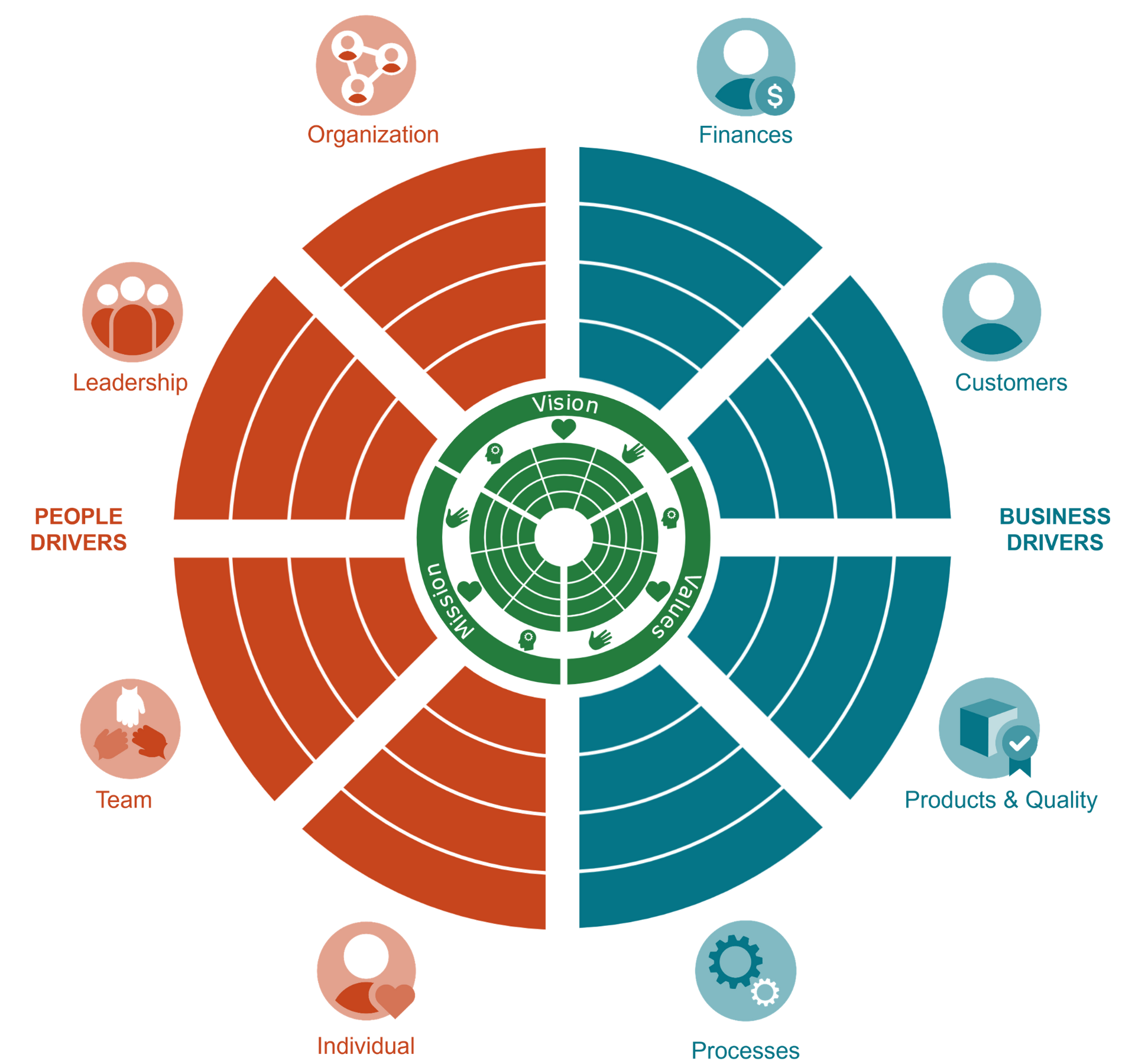 Vi har identificeret de mest kritiske drivers for, at I kan skabe en kultur, som skaber resultater. Der er mange, der kender til trivsels- og tilfredshedsundersøgelser, men trivsel er kun ét parameter. Vi skal også have fokus på de områder, der omhandler forretning, fælles mål og adfærd.